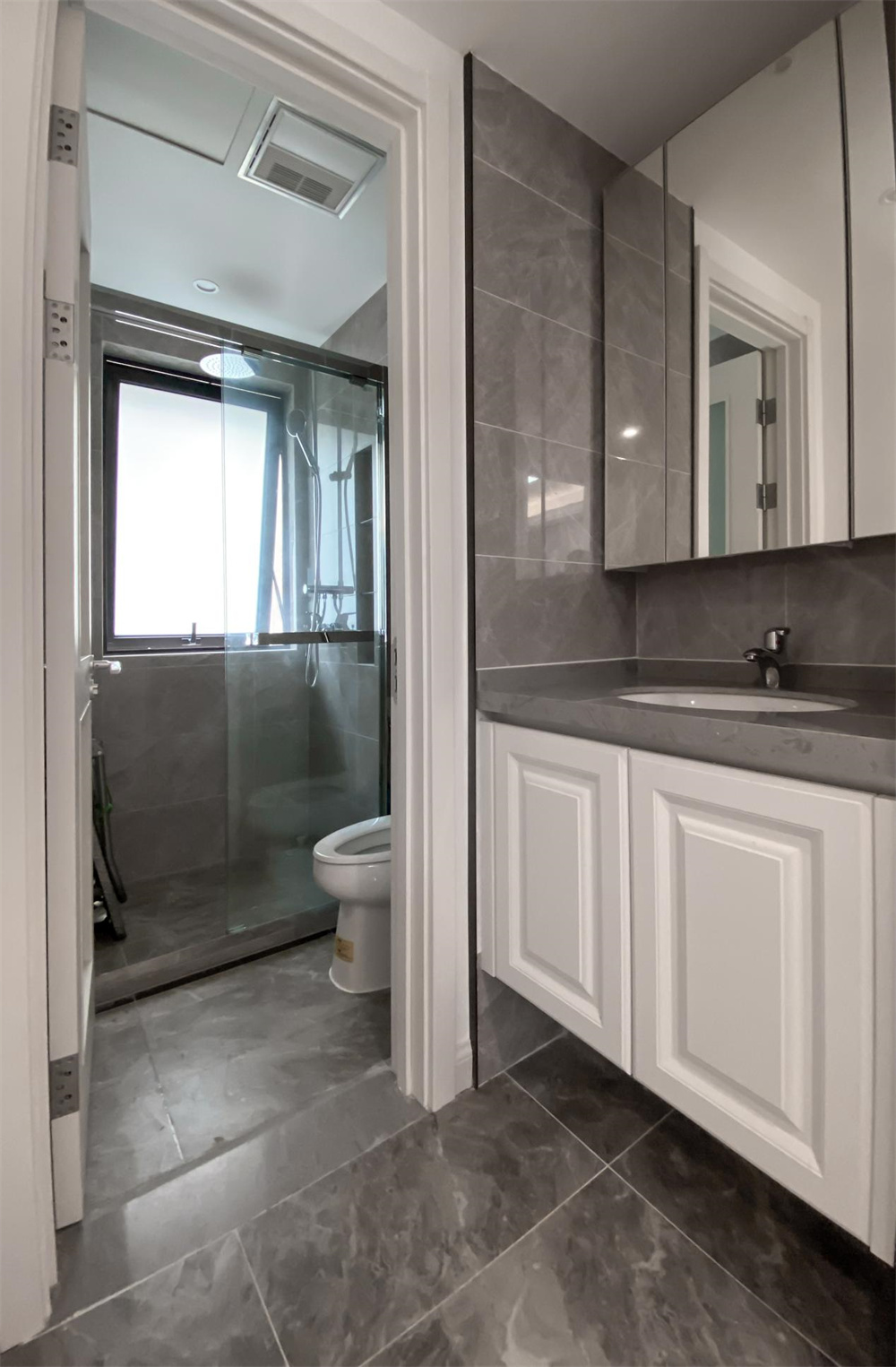 卫生间做了干湿分离,大面积的镜柜提供更多收纳的同时,也扩展了空间视觉感,柜下的灯带还能给面部照明提供额外的光线辅助。