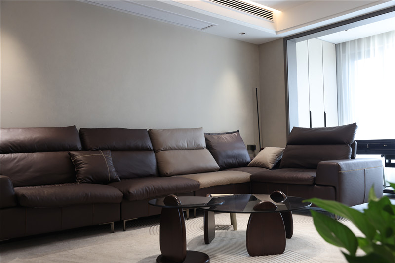 靠墙打一柜到顶式衣柜,选择一字型长条拉手,茶白色经典热门,放在卧室舒适自然。