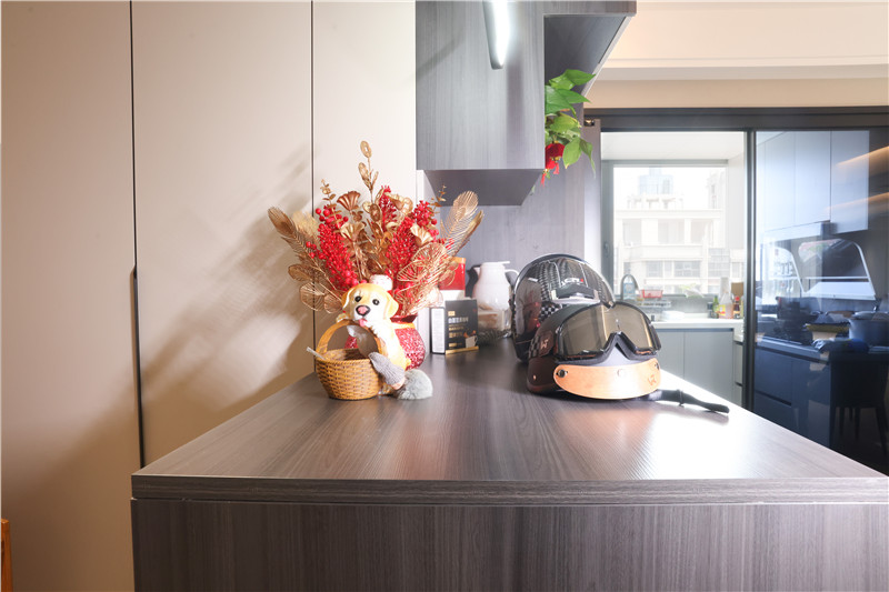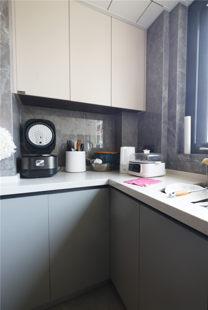 无拉手设计、高低台面、挡水条等,该厨房设计遵从着实用、简洁理念,打造幸福美好生活。