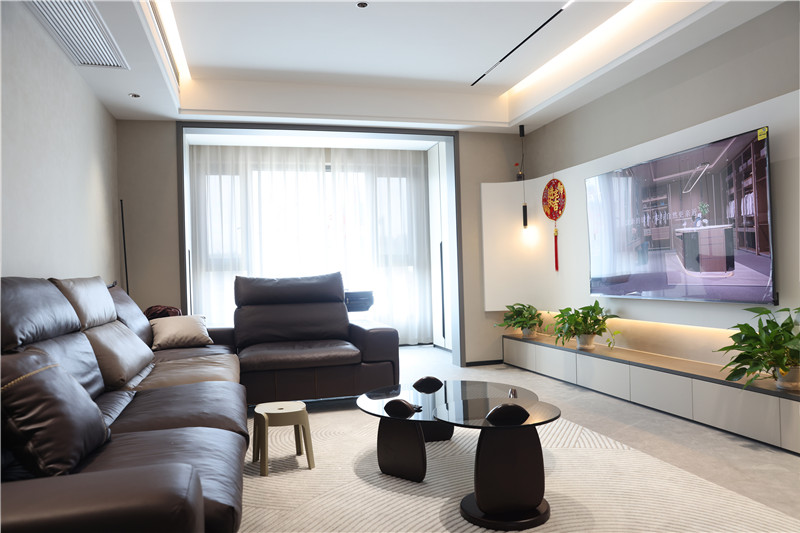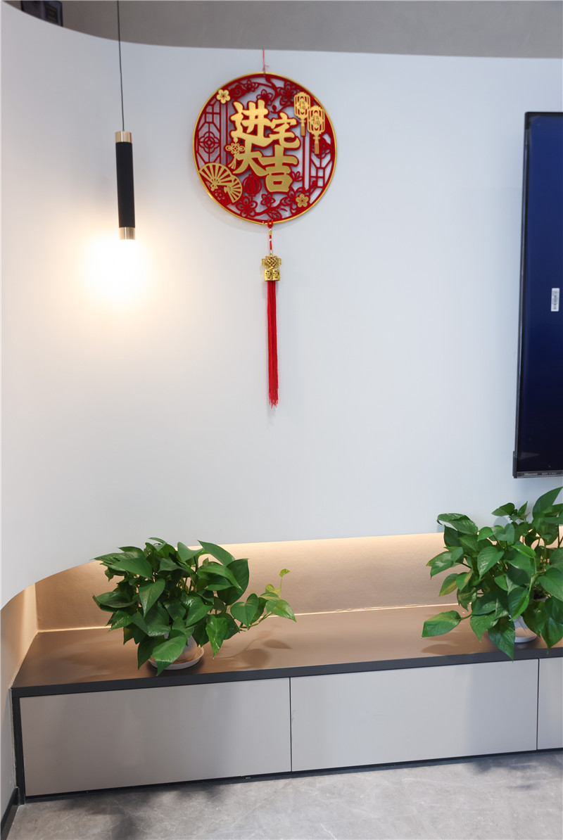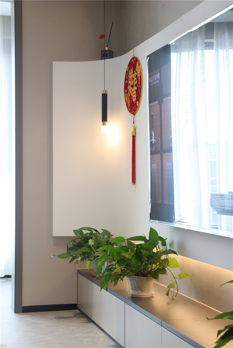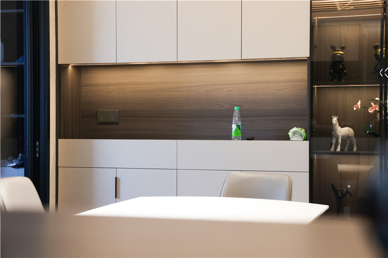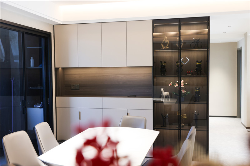 餐边柜与入户柜统一材质,中部保留空间放置物品,再加上两竖排玻璃柜,为餐边柜带来轻奢氛围,既增加整体颜值又可以充当酒柜或装饰柜。经典的餐边柜设计适用大小户型,值得还在观望的伙伴们借鉴。