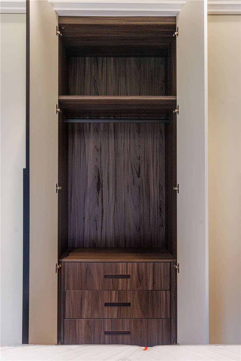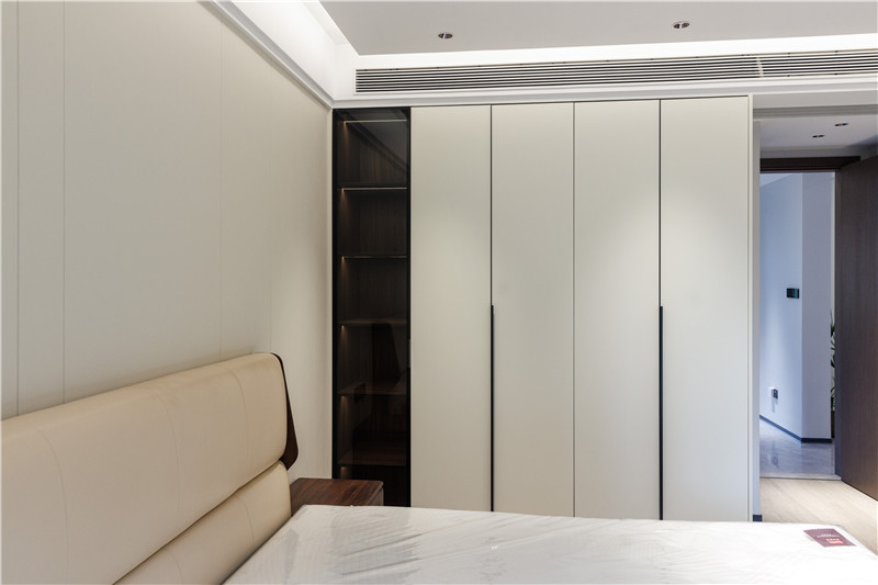 主卧和次卧的空间布局没有太大差别,一柜到顶的芬兰白色系衣柜能够打造清新的简约风,内部做抽屉分区收纳或是做挂衣区都兼顾了实用主义。