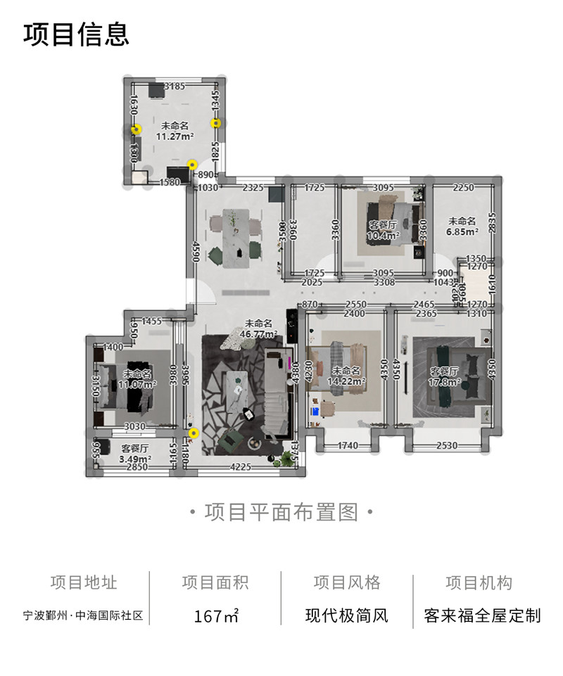 本案是来自宁波鄞州·中海国际社区的167㎡平层住宅,一个好看耐看且实用的家居空间为屋主的定制需求。