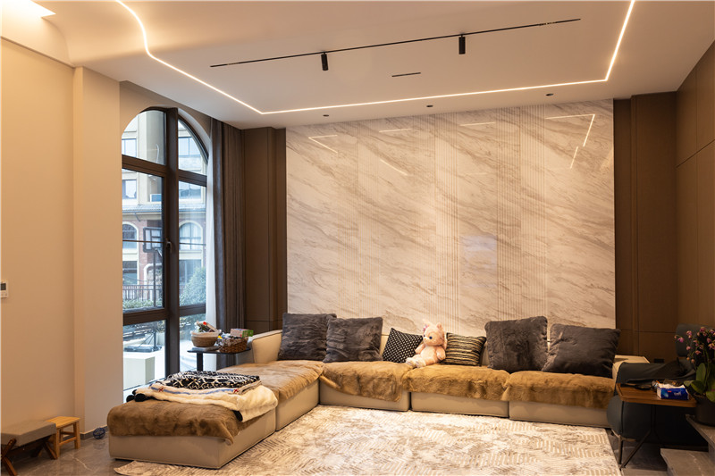 没有采用繁复的装饰物来营造轻奢氛围,更多利用设计与灯光去巧妙体现家居“奢”的氛围,体现精简的设计理念。