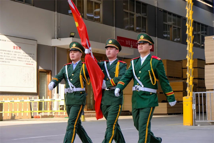 米兰家人们迎着灿烂阳光整齐的排列在场地中央,整齐的队列、昂扬的士气,在全场的瞩目下,大会拉开帷幕。国旗护卫队昂首挺胸,迈着庄重沉稳的步伐,走向升旗台。