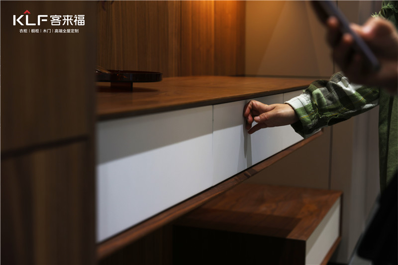 水漆工艺的运用,使「臻·至」系列具有健康、环保的特性,从内而外散发出高雅气质,特有的“见木不见漆”效果在部分空间中带来自然原生态的舒适感,折射出米兰一直践行的健康整家定制理念。