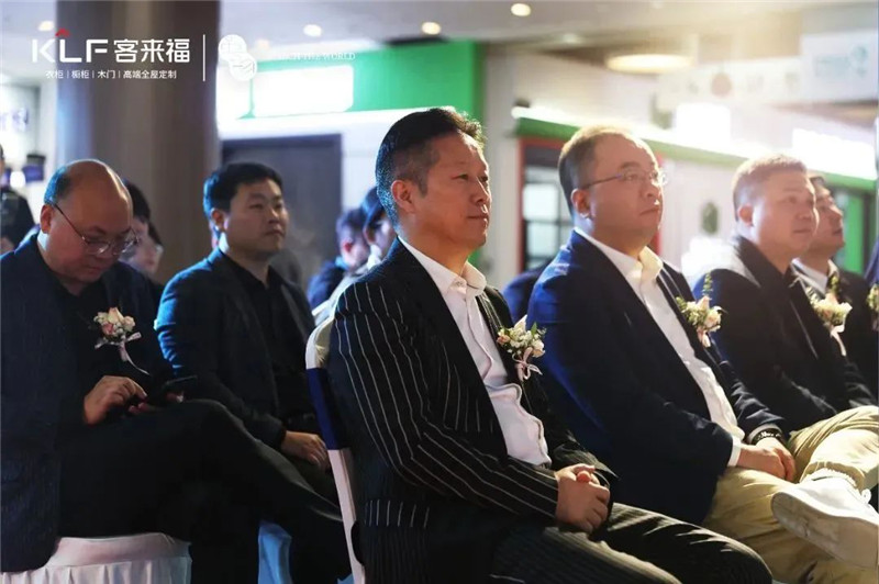 领导致辞后米兰集团高定品牌·革物创始人尹其宏、中国高定展俱乐部秘书长曾文勤、中国建博会营销负责人季蓬蓬、吉盛伟邦总经理徐晋烈、米兰逍遥居分公司总经理朱博上台剪彩。