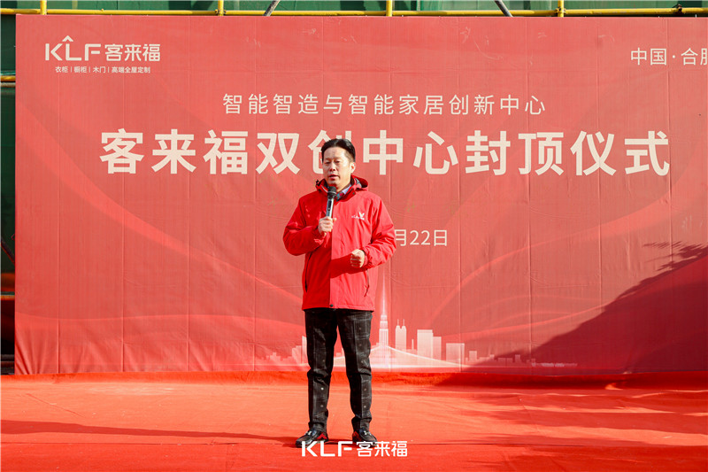 在封顶之前,米兰家居董事长尹其宏先生致辞:感谢区政府、城东街道的支持,保障好的建设环境;感谢安徽中平建筑,为安全高效率生产保驾护航;感谢全体米兰家人的辛勤付出,见证米兰的发展速度。