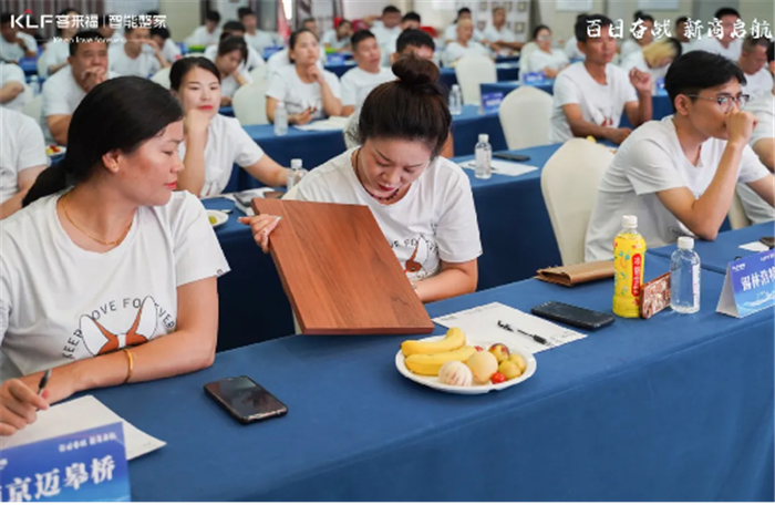 随后,设计督导部主管张言发带来实木水漆新品发布,现场详细讲解了新品采用的优质天然木皮,环保水性漆涂装及性能升级基材等多方面内容。未来,米兰将从差异化竞争迭代到优异化竞争,以更出色的产品作为销售保障,助力经销商们放心“冲锋”,斩获订单。