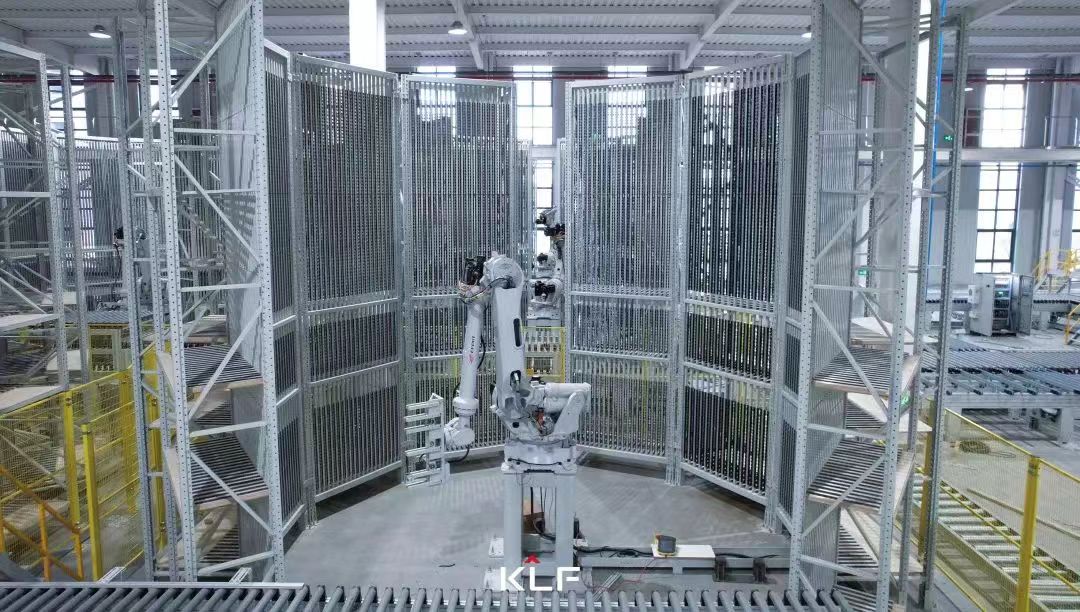 立式书架式的储存结构作为分拣后板件的缓存单元,能同时缓存多个订单,协调各个工序,有效节约厂房空间,同时又方便分拣机器人进行存取,协调机器人作业。