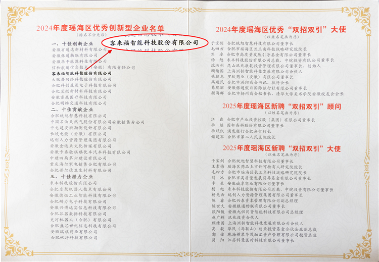2月13日,2025年瑶海区纵深推进“三大行动”加快发展新质生产力大会隆重召开。会上,安徽米兰智能科技股份有限公司凭借卓越的创新能力与突出贡献,荣膺2024年度“瑶海区优秀创新型企业”殊荣。