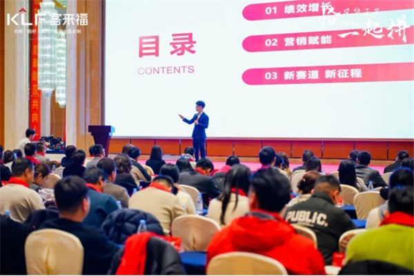 晚场会议伊始,米兰零售事业部副总尹邵杰上台做2025年营销战略规划分享。他指出,随着新房红利减退、大宗渠道弱化,家居行业正进入加速洗牌的新时代。“无整装不增长”成为共识,迫使定制企业全面升级精细化服务思维,从单纯的产品销售转向提供“空间解决方案”。未来,米兰要坚守以定制产品为核心的整装服务模式,与上下游行业深度合作、双向赋能,共同打造全品类交付组合拳,全力推进大家居战略落地,实现大家居强流量、促转化、扩单值、优交付的绝对生态体系实力。