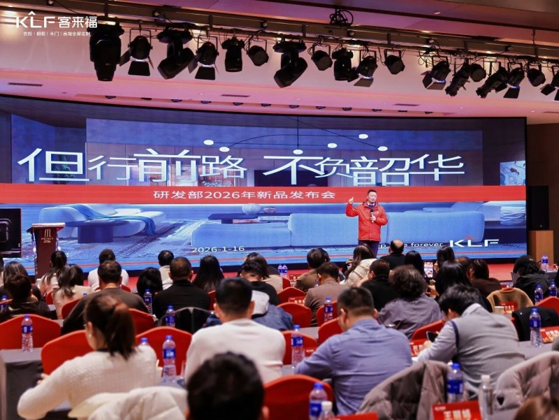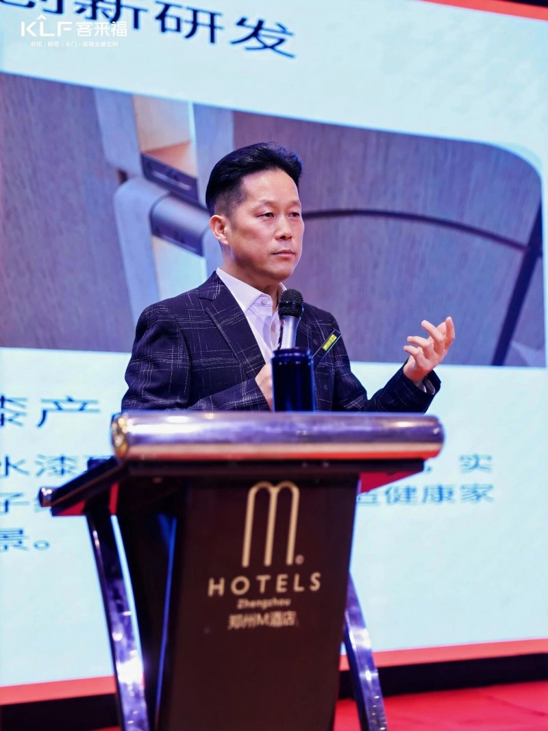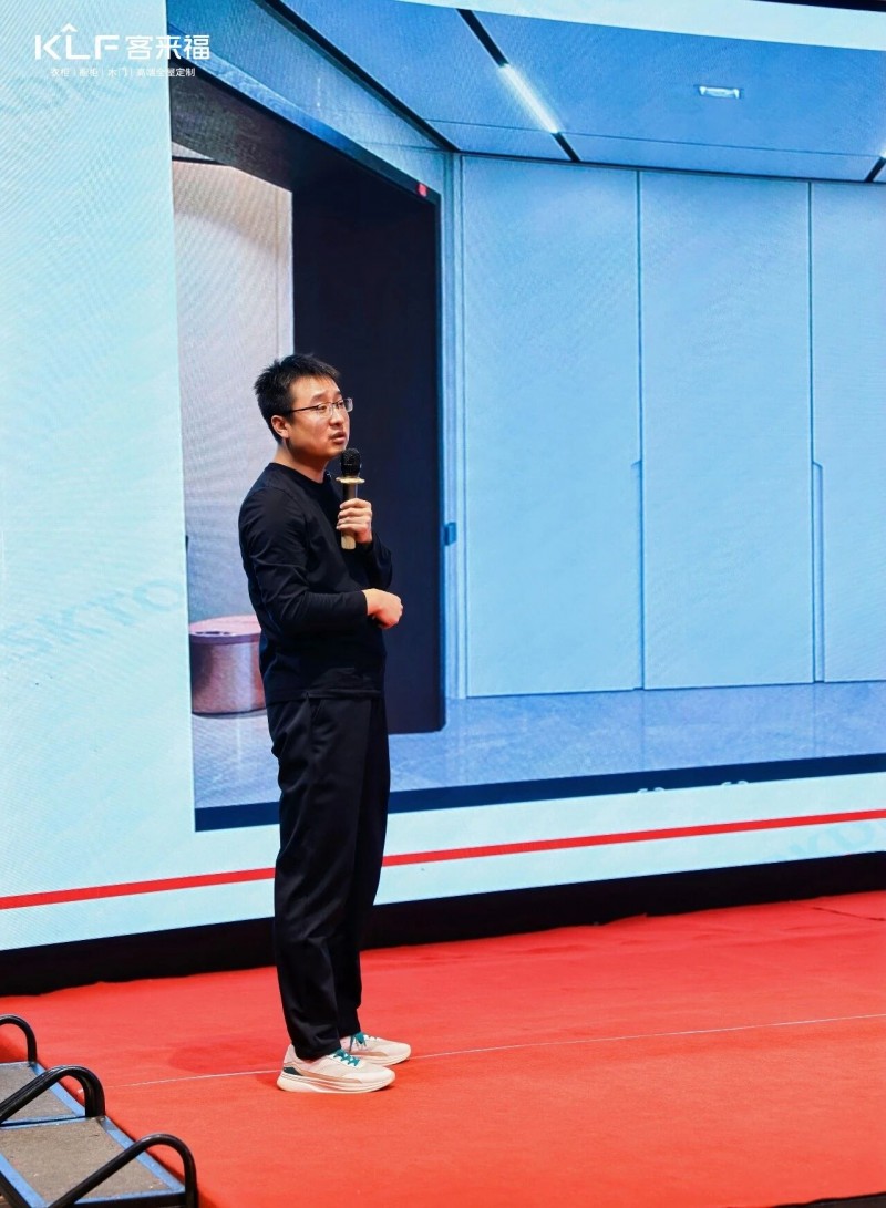 在热烈的掌声中,米兰商研部研发总监刘云辉先生登台,为全场经销商带来了2026年度新品深度解析。从核心板材五金到前沿色彩搭配,再到整体空间解决方案,系统阐述了新品的竞争优势与匠心设计。干货满满的分享,令在座合作伙伴对年度新品矩阵与市场前景有了清晰认知,信心倍增。