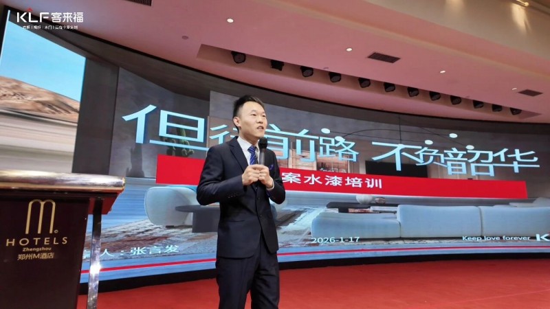 紧随新品分享后,米兰设计督导主管张言发先生登台,聚焦“水漆工艺与应用”展开专项培训。他深入剖析了水性涂料的环保特性、工艺优势及终端展示要点,通过实际案例解析,强化了经销商对米兰健康产品体系的理解与推广能力,为终端市场注入了坚实的环保技术支撑。